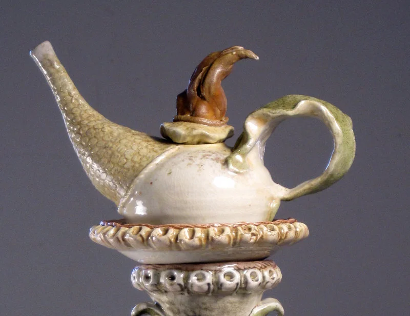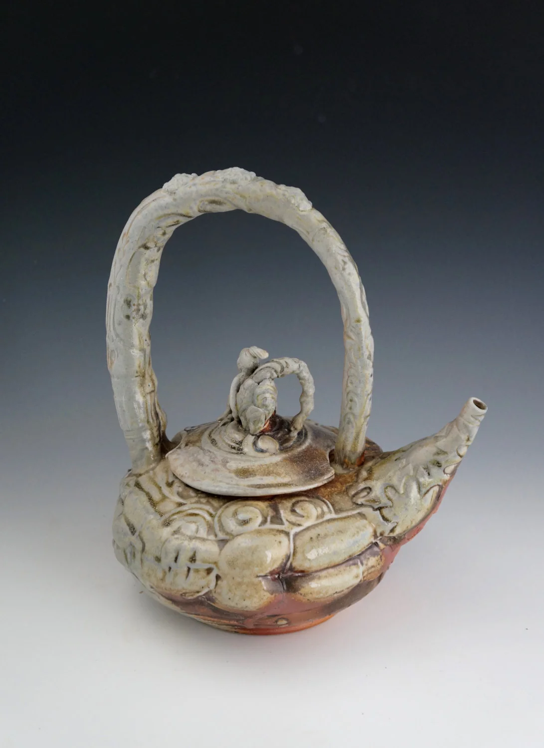 Wood Fired Strap Handled Wrapped Figure Teapot